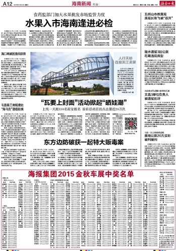 海南日报 海南新闻社会 012 2015-09-221 2015年09月22日 星期二