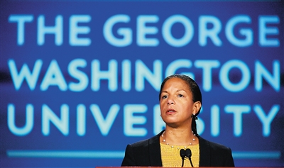 ?9月21日,在美国首都华盛顿,美国总统国家安全事务助理苏珊·赖斯在乔治·华盛顿大学就美中关系发表演讲。 在中国国家主席习近平开始对美国的首次国事访问前夕,美国总统国家安全事务助理苏珊·赖斯21日强调,美中关系并非“零和博弈”,美国正在坚定而系统地“扩展与中国合作的广度和深度”。 新华社记者 殷博古 摄