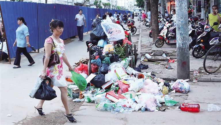 长康路现状:脏乱拥堵,垃圾随意倾倒。