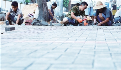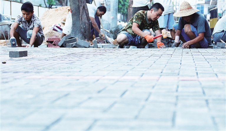 海口正按“双创”标准对背街小巷进行升级改造。图为9月22日秀英区长流镇长康路改造现场,将被打造成示范街。 组图由本报记者 李英挺 摄