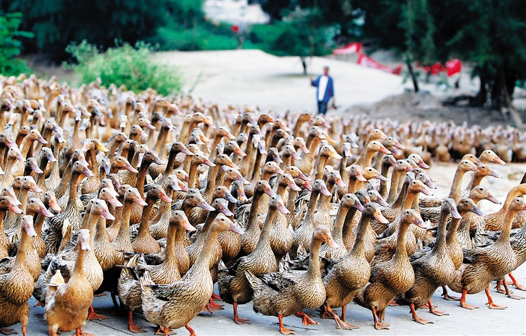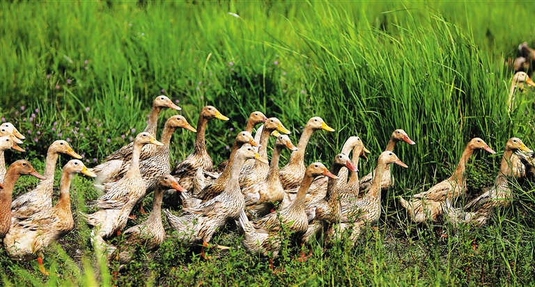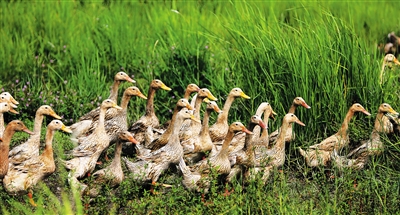 儋州逢秋瓜菜专业合作社社员董现明说:“我养鸭10年,总收入不低于100万元,不但修起了新房,而且在供3个孩子上大学的同时,手头上仍然还有闲钱用。”