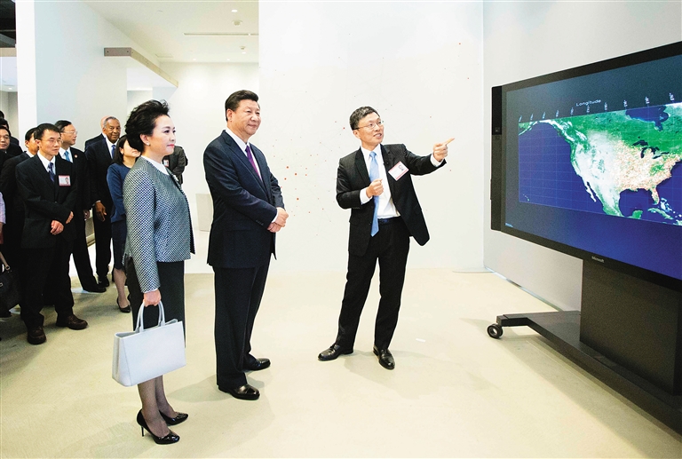 纳德拉向习近平夫妇介绍了微软公司在中国的发展近况。在微软公司前瞻技术展示中心,工程师向习近平夫妇展示了3D“全息眼镜”设计摩托车造型和美国气象数据可视化系统,以及中国公司运用微软技术生产的生态系统硬件产品。习近平仔细观看了展示,希望微软同中国的伙伴深化合作,生产更多惠及人类生活的智能产品,给大家带去方便和快捷。