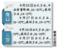 受弱冷空气影响,中秋节假期气温适宜,白天局部地区有阵雨或雷阵雨。26日,全岛多云,北部和西部的局部地区午后有阵雨或雷阵雨;27日,全岛多云,北部和东部的局部地区有阵雨。
