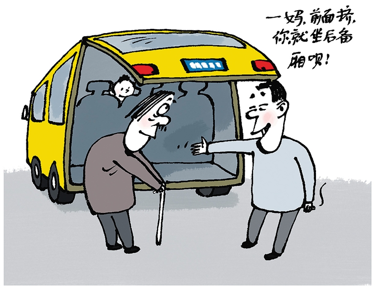 儿子犯困嫌太挤,男子却让自己60岁的老母亲去坐后备箱,如此方法,真不是一般人能想得出来的。后备箱本为存放货物而设,却成了老人的栖身之所,倘若发生追尾事故,男子又该如何面对?况且,车子本为母亲的养老钱所买,男子竟理直气壮地让老母亲坐后备箱。如此做法,让人质疑男子心中的孝心还“残留”几分。就孩子而言,因为犯困就要“霸占”整个座位,对于这种“自私”的要求,男子非但没有及时制止、教育,反倒撇开老母亲为其腾位子,几多溺爱,几多娇惯。看似为儿子好,其实是害了儿子。另外,男子的做法,儿子看在眼里,也难免不记在心里,如此“言传身教”又怎能让孩子以后尊敬、善待他人呢?男子的做法,让社会心寒,也让老母亲心伤,同样妨碍了儿子的健康成长。这真是: