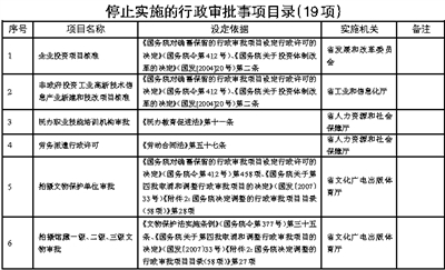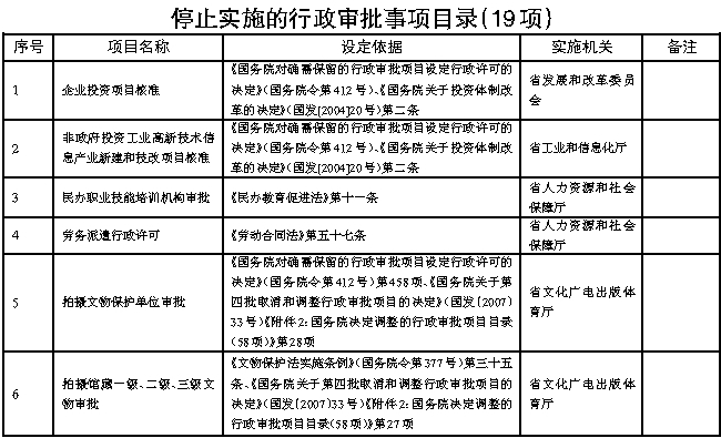 为推进简政放权,促进政府职能转变,提高行政效率,根据有关法律、行政法规的规定,决定在海南经济特区停止实施19项行政审批事项(目录附后)。对停止实施的行政审批事项,省人民政府应当制定相关的管理措施,强化事中事后监管,防止出现管理真空;对实践证明不宜停止实施的,恢复实施有关行政审批事项。