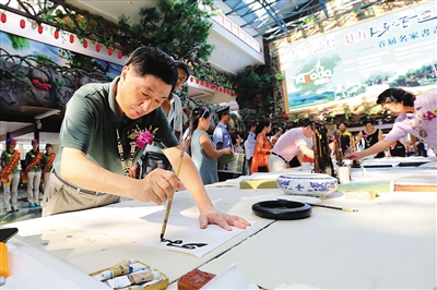 本次书画展展示海南数十位艺术家的作品近200件,有中国画、油画、水彩、粉彩、岩彩、行书、隶书、木刻、雕塑等多项艺术作品,分别展示了海南著名画家刘培军的中国画《问道》、《知春图》、徐麟的油画《雨林印象》、林明俊的岩彩《鹤之舞》、胡天波的行书《李白诗之首》、著名雕塑家程连仲的雕塑《伏波将军》等众多名家的精湛艺术作品。