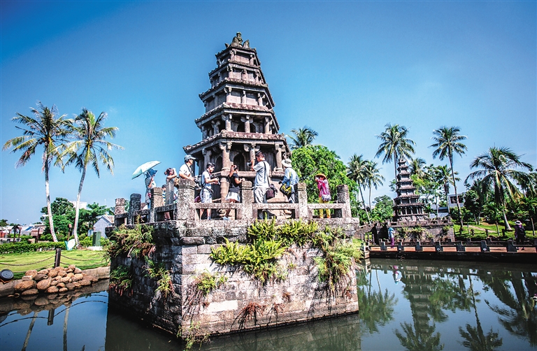 池塘映日荷花飘香十里,村道椰林掩映笑语不休。走在美郎村,游客们不仅随处可感受到历史岁月的厚重气息,也沉醉在秀美迷人的田野风光里。