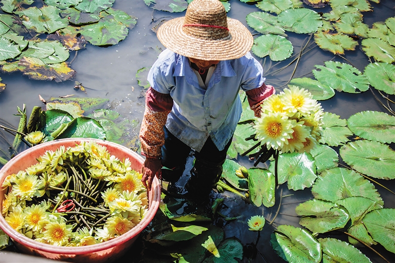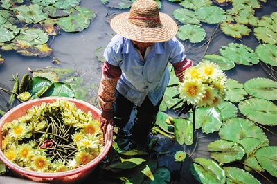 “下一步,我们计划依托九品莲开发莲花宴,以及九品莲美容养生体验。”美郎村当地村民经过探索,已经研究出了莲花排骨汤、清炒莲花梗等菜肴。新鲜的莲花和农家猪肉排骨放进清水中熬煮上半个小时,莲花的清香将猪肉的油腻味去除,金黄色的骨头汤甘甜怡人,让人大快朵颐。
