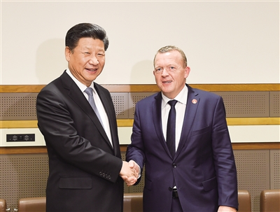 习近平指出,今年年底的气候变化巴黎大会预期将完成气候变化新协议谈判。中方今年6月向联合国提交的“国家自主贡献”是为实现《联合国气候变化框架公约》目标所能作出的最大努力,是为推动巴黎大会成功作出的实际贡献。中方愿同丹方加强合作,按照共同但有区别的责任原则、公平原则、各自能力原则,推动巴黎大会达成全面、均衡、有力度的新协议。