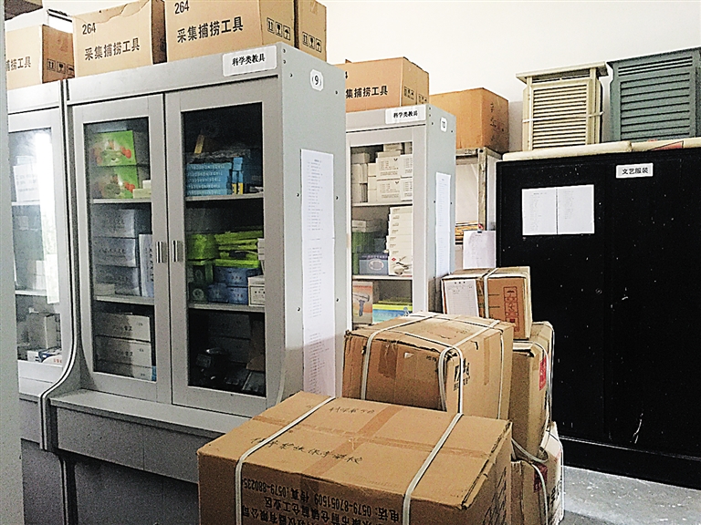在保亭什玲中心学校采访时,记者从器材室窗外看去,里面比较凌乱,有些没有开封的箱子上布满灰尘。“以前学校有初中,这个器材室不少设备是教育资源整合后,原来初中时期留下来的,新配备的教学器材较少,我们平时也很少用。”一位老师告诉记者。