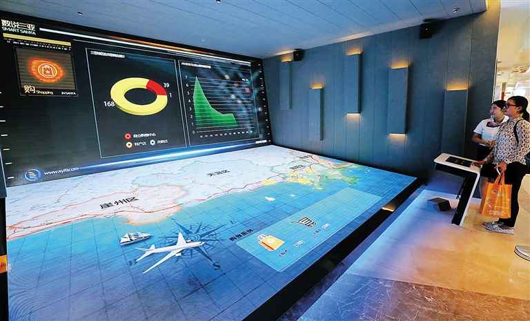 游客可以在这里看到蜈支洲岛、天涯海角、南山南海观音等著名景点的实时天气和人流量动态,可以在体感中心模拟体验各个景点的风光,还可以在数说三亚区,通过GIS地图和图表数据了解酒店过夜人数、航班进出港人数、海鲜排档投诉处理数据等旅游实时动态。