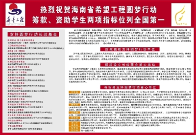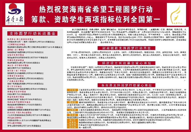 热烈祝贺海南省希望工程圆梦行动筹款 资助学生两项指标位列全国第一