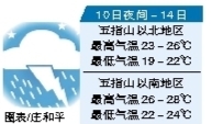 10日夜间~11日,五指山以北地区有中到大雨、局地暴雨到大暴雨,五指山以南地区有雷阵雨、局地暴雨;12日~14日,北部、中部和东部地区有中到大雨、局地暴雨到大暴雨,西部和南部地区有小到中雨、局地大雨。10日夜间~14日,五指山以北地区最高气温23~26℃,最低气温19~22℃;五指山以南地区最高气温26~28℃,最低气温22~24℃。15日~16日,全岛以多云天气为主,最高气温有所回升,全岛最高气温26~29℃,最低气温变化不大。