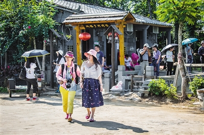 游客慕名特来探寻乡村古迹