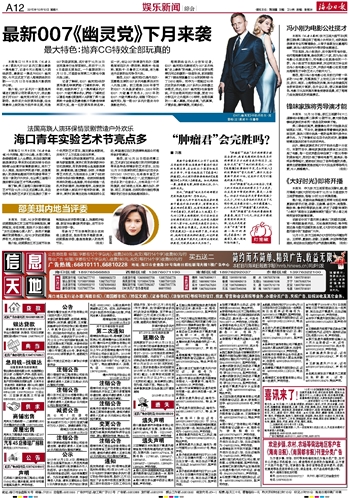 海南日报 娱乐新闻综合 012 2015-10-101 2015年10月10日 星期六
