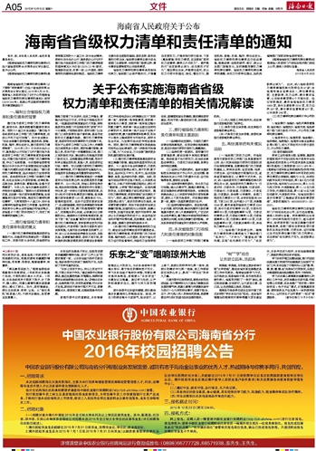 中国农业银行股份有限公司海南省分行2016年校园招聘公告