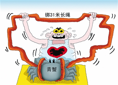 一斤青蟹,绳重竟达二三两。经商之道,贵在诚信,绳子长了,却短了诚信。青蟹被五花大绑,虽能赚取一时的蝇头小利,但砸掉的却是自己诚信的招牌,长期以往,无异于自绝门路。而现实中,如此独具匠心的缺斤短两、坑蒙拐骗的销售行为可谓花样频出,对此,消费者要将眼睛擦亮,及时监督投诉,相关部门也需加大监管力度,对违规销售行为严厉打击。这正是:
