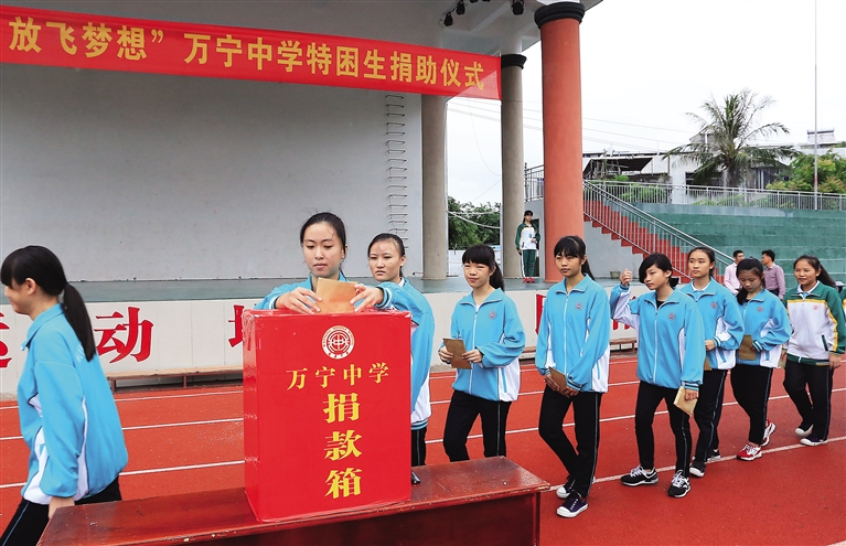 万宁中学举行特困生捐助仪式