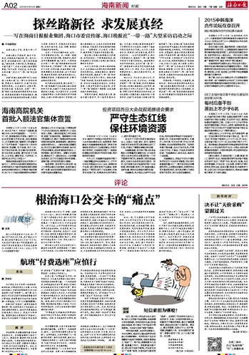 海南日报 海南新闻时政 002 2015-10-131 2015年10月13日 星期二