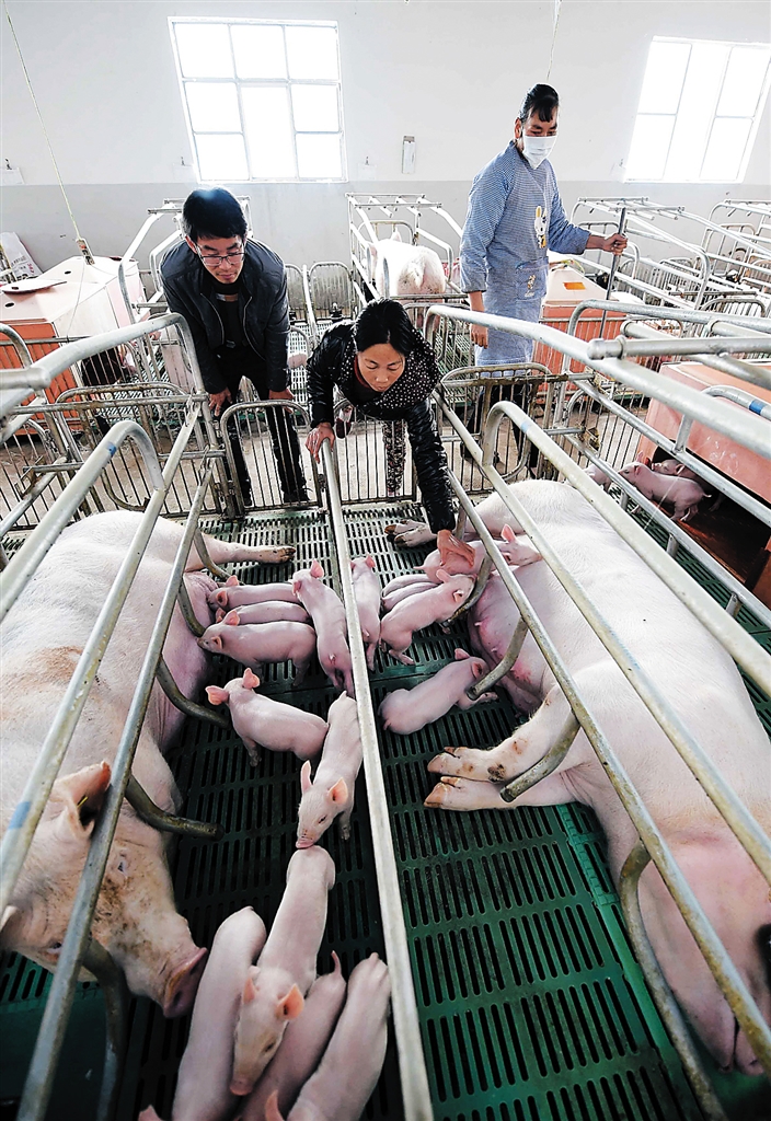 10月14日,李文来和沈亚林夫妇在观察仔猪生长情况。 云南省曲靖市会泽县大井镇的李文来和沈亚林2005年从云南省农业大学毕业后,放弃外出工作的机会。他们于2007年结婚后回到家乡仓房村从事养殖业。创业之初,夫妻两人克服各种困难,从零开始创业,办起了养猪场。在当地政府的帮扶支持下,养猪场规模不断发展,2013年6月他们成立公司,建成占地面积80亩的养殖基地,以养殖仔猪和种猪出售为主。目前,养殖基地年出栏可达6000多头,带动当地240户农民发展养殖业增收致富。新华社记者 杨宗友 摄