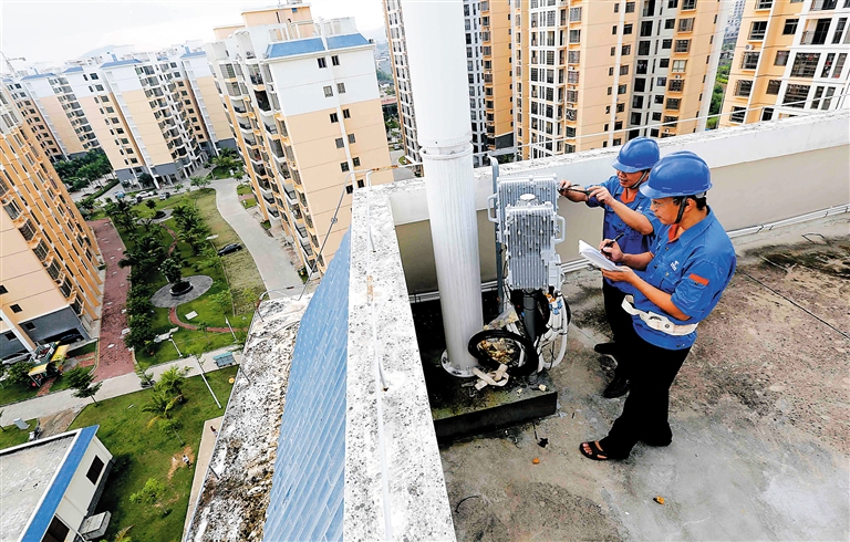10月14日,屯昌县屯城镇,电信局工作人员正在检测光网。据了解,从9月份起,屯昌将正式启动“光网屯昌”建设工作。