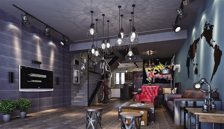 设计说明:设计为现代工业风,以黑白灰为主色调.考虑到户主为飞机机长,设计融入了工业机械感元素。木制、铁艺、皮质相结合,展现英伦风;粗糙质感的墙面,更体现出时尚简约的生活品味。
