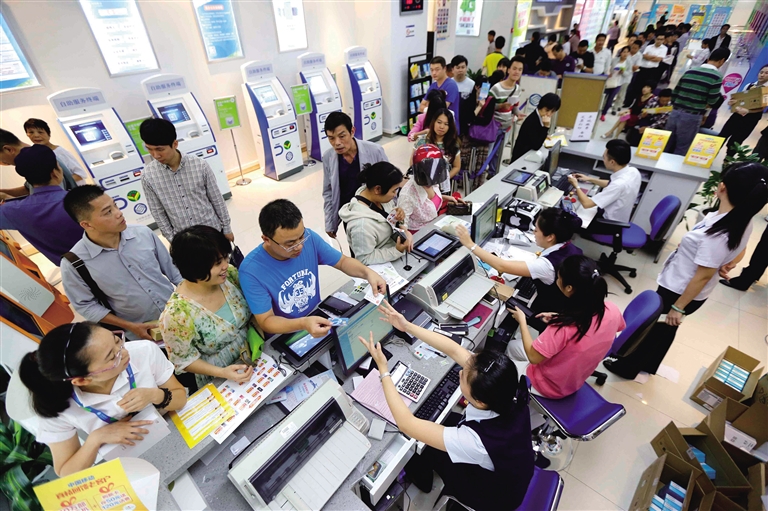 2015年10月10日上午,海南移动国贸服务大厅,近百人的长队正在等待办理 “真情回馈老客户免费送机” 业务,这样的火爆场面已经持续了近半个月的时间。