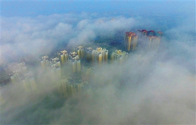 10月15日早晨,屯昌屯城镇上空,浓浓的大雾将整个城市笼罩着,犹如人间仙境般。据了解,近日,随着气温的上升,我省多地尤其是中部地区的市县早晨都出现了大雾天气。本报记者 陈元才 通讯员 邓积钊 摄