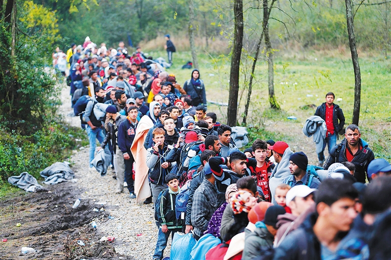 10月16日,在克罗地亚博托沃,难民向匈牙利边境行走。 欧盟领导人15日在比利时布鲁塞尔召开秋季峰会。迫在眉睫的难民危机是会议的焦点议题,这是欧洲领导人今年第四次聚首寻求危机解决之策。 新华社/路透