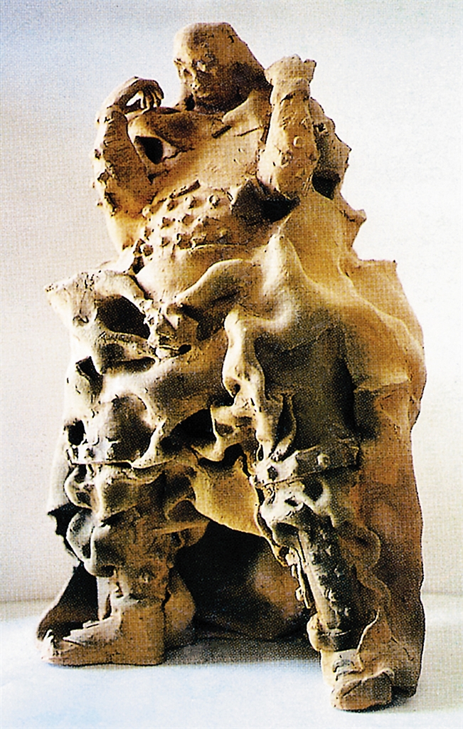 令陈新印象最深刻的作品是陈硕在他的恩师去世的时候创作出来的——《伤逝的歌》。《伤逝的歌》创作于1999年,当时的陈硕还在德化陶艺协会当会长,忘年交的恩师因为车祸,意外去世了。据陈硕回忆,“我们经常在一起谈艺术,他当时已经50多岁了,还经常画素描、写书法、练字帖。而在艺术上他也有很多敏锐的见解,基本上我都很认同。他也一直很欣赏我”。为了纪念恩师,陈硕在恩师走后的第二天,用半天的时间一口气创作完成了《伤逝的歌》,告慰亡者。“我是在哭的时候做完的,边哭边做。我在人的背上放了一只鸟,鸟踩在人的背上,像是人与鸟在交流的状态,而这只鸟也喻示着灵的升华。”陈硕在作品里面留下了他当下千回百转的思考。