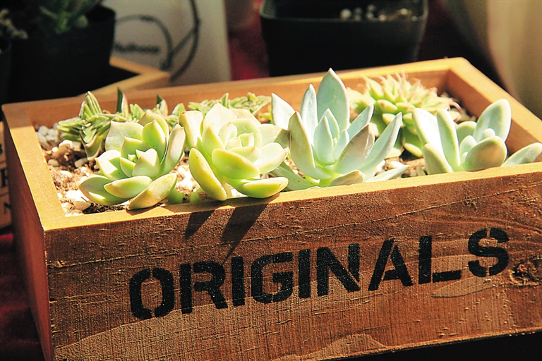现在,看着付出许多精力养得水灵漂亮的“肉肉”们,克拉心中充满了成就感和幸福感。他表示,自己从小对美学、设计等方面的内容很感兴趣。犹如插花艺术一般,多肉也可以玩出很多花样,乐趣无穷。例如,可以将习性相同的多肉植物种在一个盆中,组合成丰富多彩的多肉拼盘。种类各异的多肉们,再配上造型各异的小花盆、小萌宠,可以打造成很多丰富多彩的DIY造型。