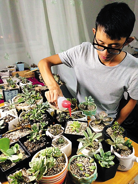 刚开始养多肉,克拉也和许多新手一样,遇到了不少问题:“种植的土壤怎么配比?”、“多长时间要浇一次水?”、“每次要浇多少水?”……通过网络和书本学习,再加上向资深的“肉友”请教,他逐渐掌握了多肉植物种植的基本知识。