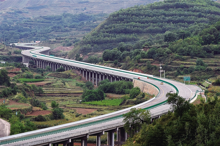 这是在甘肃省天水市境内拍摄的十(堰)天(水)高速公路。 “十二五”以来,甘肃省大力实施交通建设项目,不断拓宽交通领域的合作,公路、铁路、民航机场等交通基础设施建设取得显著成效。伴随着丝绸之路经济带的建设,甘肃省2015年出台了《丝绸之路经济带甘肃段“6873”交通突破行动实施方案》,计划从2015年起用6年时间,完成投资8000亿元以上,建成公路、铁路7万公里以上,实现甘肃省对内对外公路畅通、铁路连通、航路广通3大突破,从根本上解决丝绸之路经济带建设中交通不畅的问题。 新华社记者 范培珅 摄