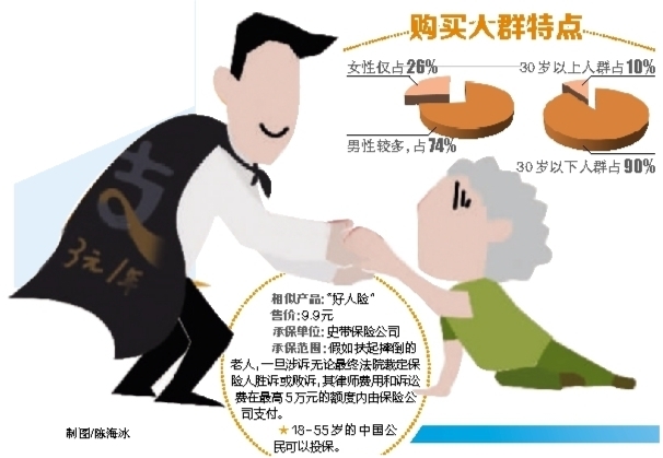 也就是说,按照该保险的相关条款,购买者需要注意的是,“扶老人险”发生保费的时候,保的并不是案件败诉后赔给对方的赔偿金,而只是赔付案件的诉讼费用。