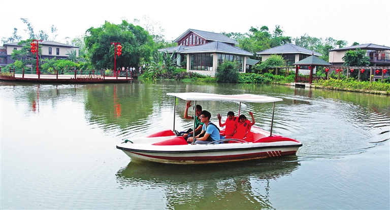 游客在“五星级”村庄——海口市琼山区墩插村世外桃源休闲农庄划船,享受乡村游乐趣。乡村游等新兴旅游项目搅热了我省旅游市场,旅游经济已成为推动我省经济增长的主力军。本报记者 张茂 摄