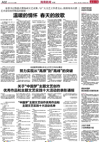 紧扣中国梦 推动海南文艺繁荣发展