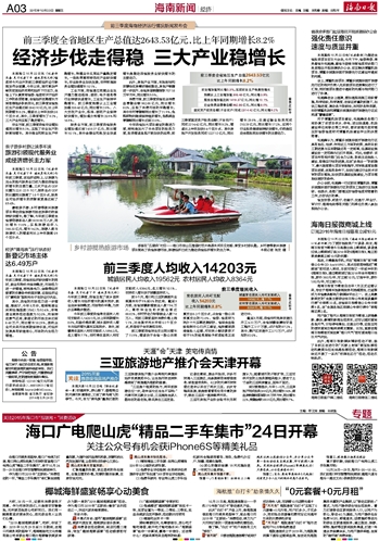 海南日报 海南新闻经济 003 2015-10-231 2015年10月23日 星期五