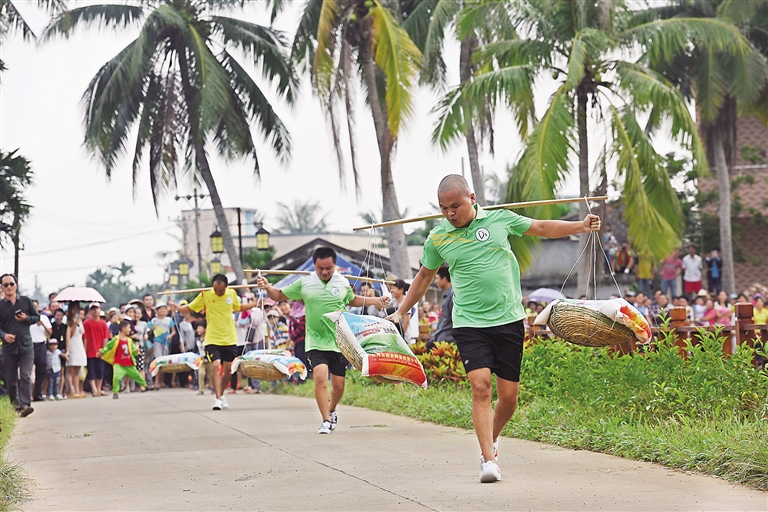 10月24日,秋收已经结束,琼海市大面积冬种瓜菜还未开始。琼海市在农闲时节开展挑米和厨艺大比拼、自行车障碍赛等农民趣味活动。同时举办十大种稻能手评选、特色农产品优购展。该活动吸引众多农民参与。