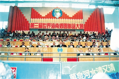 当年11月,世界各地海南人期待已久的相聚盛会终于来临。周松回忆说,11月28日至30日,联谊大会在海南大学联谊馆举行,共有亚洲、美洲、欧洲、澳洲等共22个国家和地区250个社团的1766名代表参加大会,大会任务除了交流各地乡团活动情况,还有一项重要任务就是共商故乡——海南的建设大计,大家发言充满激情,还有人在会场唱起了歌,气氛非常活泼。