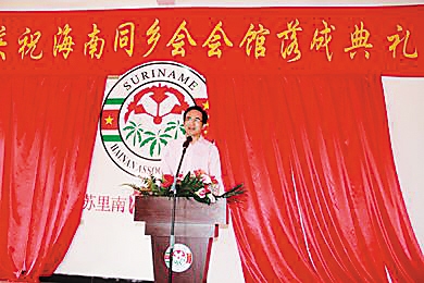 苏里南是南美洲一个自然资源丰富、人口较少的国家,海南侨胞早在1991年就踏上了这片土地,乡亲们在这里互助互惠,团结发展。成立于2005年的海南同乡会是一个比较年轻的社团,又是南美洲第一个海南社团,在这短短的十年间,我们不断健全会务的各种制度,同时向各个国家或地区的海南社团学习,使同乡会得到茁壮成长。