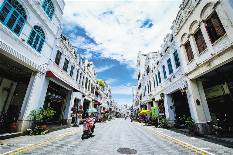 据悉,海口老街主要分布在市区得胜沙路、新华南路、中山路、博爱路及解放路一带,街道两旁是近百年历史的充满南洋建筑风情的骑楼,老街最古老的建筑四牌楼建于南宋,至今有700多年历史。尽管已过去了百余年,但如今走在骑楼老街的石板路上,仍能感受到美好的生活气息。