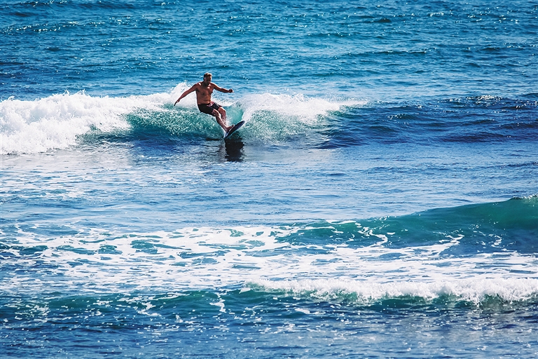 浪尖飞舞,海滩露营,今年国庆,日月湾成为许多游客钟爱的去处。在连续举办多届冲浪节后,日月湾已经不再是那片“藏在深闺人未识”的美丽海湾,开始成为吸引越来越多游客的旅游目的地。