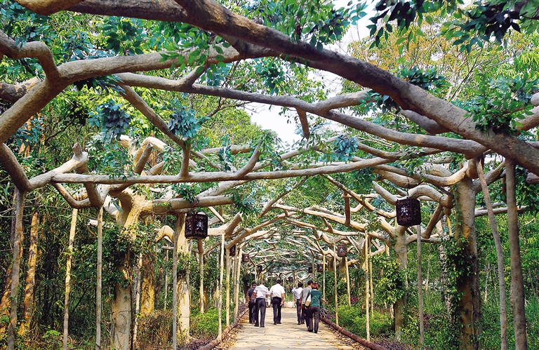 这是一座被青山绿水环绕的城市。驱车前往白沙黎族自治县,无论是宽阔的柏油马路,还是硬化的乡村水泥小道,随着车子的前行,一排排浓郁的绿色树影总让人目不暇接。