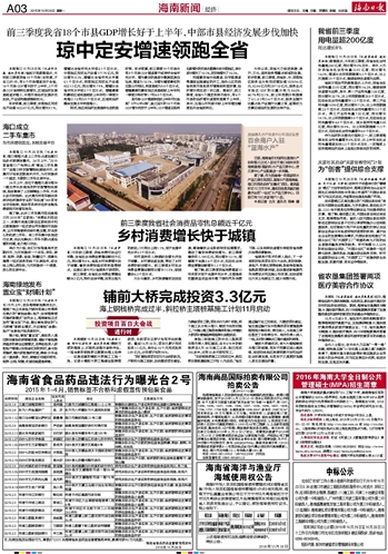 | 海南日报 海南新闻经济 003 2015-10-261 2015年10月26日 星期一 |