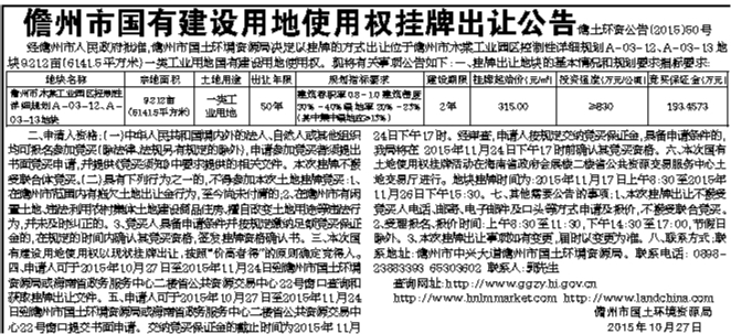 儋州市国有建设用地使用权挂牌出让公告儋土环资公告