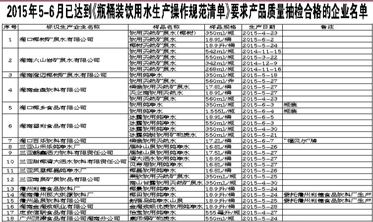 三、现将已达到《清单》要求,2015年5-6月产品质量抽检合格的企业名单予以公告。