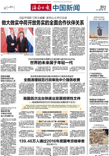 海南日报 中国新闻 009 2015-10-271 2015年10月27日 星期二