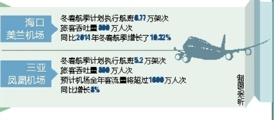 为使季节更替后旅客空中交通出行更加合理、便捷,按照惯例,我国民航系统每年都要进行两次航班计划调整。每年10月的最后一个星期日至第二年3月的最后一个星期六,执行冬春季航班计划。做为国内知名的旅游目的地,为方便旅游出行,《旅游周刊》记者了解到,按照新的航班计划,海南两大机场的航班架次将大幅增加。