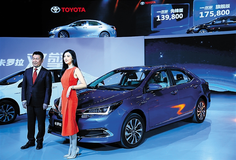 10月28日,一汽丰田宣布推出卡罗拉油电混动双擎车。此次上市共有先锋版、精英版、豪华版、旗舰版4款车型7种颜色配置选择,价格区间为13.98-17.58万元人民币。新华社记者 王申 摄