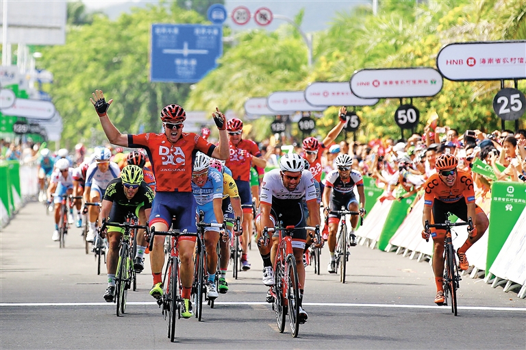 有记者问莫多洛,你拿到今年的环岛赛总冠军,是否感到高兴?莫多洛说,昨天的比赛我拼得太凶,今天我的身体状态还没有完全恢复。在今天的比赛中,我要十分感谢我的队友们对我的支持。我一直在他们的身后骑行,而大团中不断地有人在主集团前方进行进攻,这对我们造成了很大的威胁。不过,我的队友们一直在大团前方控制着比赛节奏,这让我没有了任何意外和危险。最后一个赛段,我本来希望在保住黄衫和绿衫的前提下,能够冲得赛段冠军。但我的感觉过于疲劳,身体也没有恢复到最好的状态,没能获得赛段冠军有点可惜。